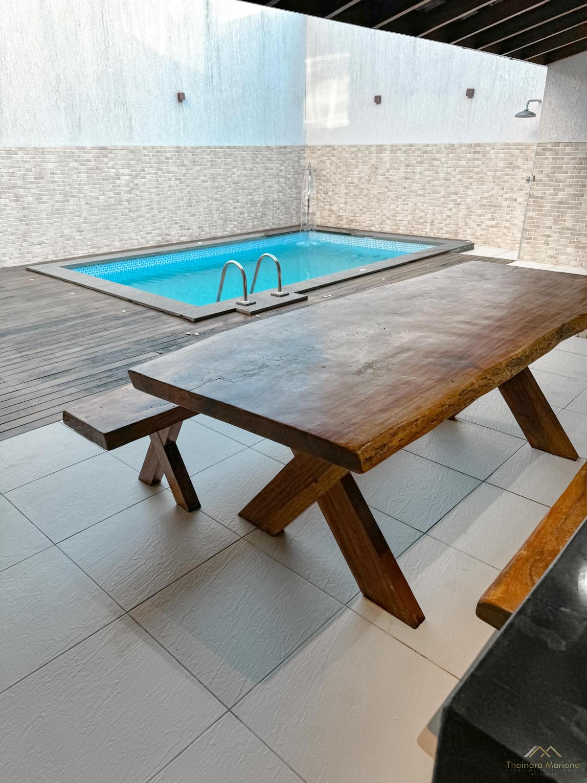 - Área de lazer incrível com piscina, churrasqueira e deck de madeira;